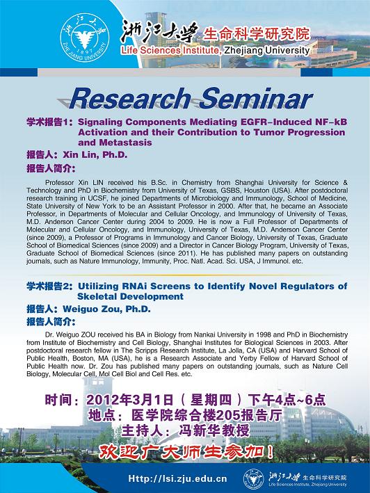 2012.3.1 林欣教授(美国UTSWMC)和邹卫国博士(美国哈佛大学)学术报告