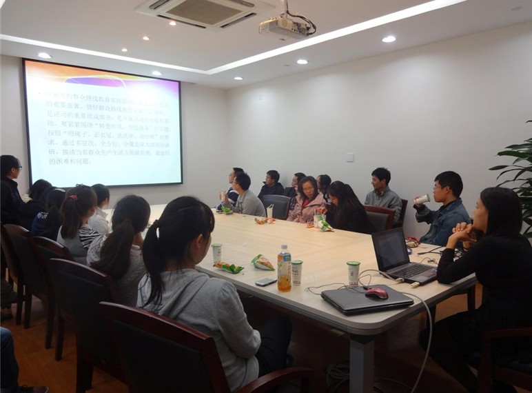 支书张振蕾同学首先就群众路线做了简要介绍:1929928,《中共中央给红军第四军前委的指示信》中第一次提出了群众路线这个概念。群众路线是党的根本工作路线。以毛泽东为代表的中国共产党在长期斗争中形成了一切为了群众、一切依靠群众和从群众中来、到群众中去的群众路线。群众路线是毛泽东思想的活的灵魂的三个基本方面之一,是中国共产党最根本的工作路线;还向各位党员介绍了由中共中央党的群众路线教育实践活动领导小组办公室主办、人民网承办的党的群众路线教育实践活动官方网站——群众路线网,并鼓励大家积极关注该网站,了解群众路线的最新动态。
