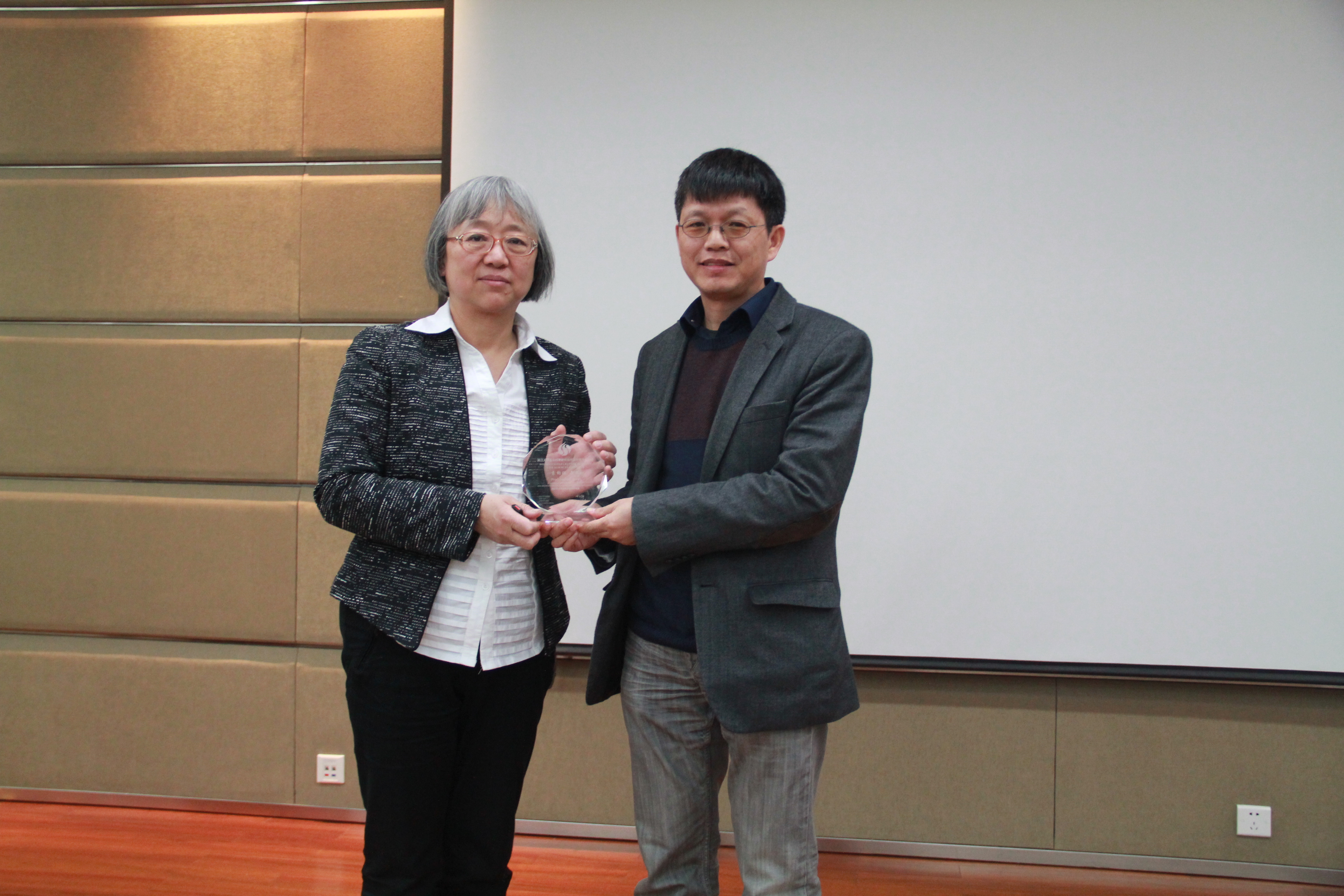 报告会场座无虚席,很多师生慕名而来、席地就坐。报告会后,冯新华院长为袁钧瑛教授颁发了“九游(中国)一站式服务平台杰出学者系列讲座”水晶牌。