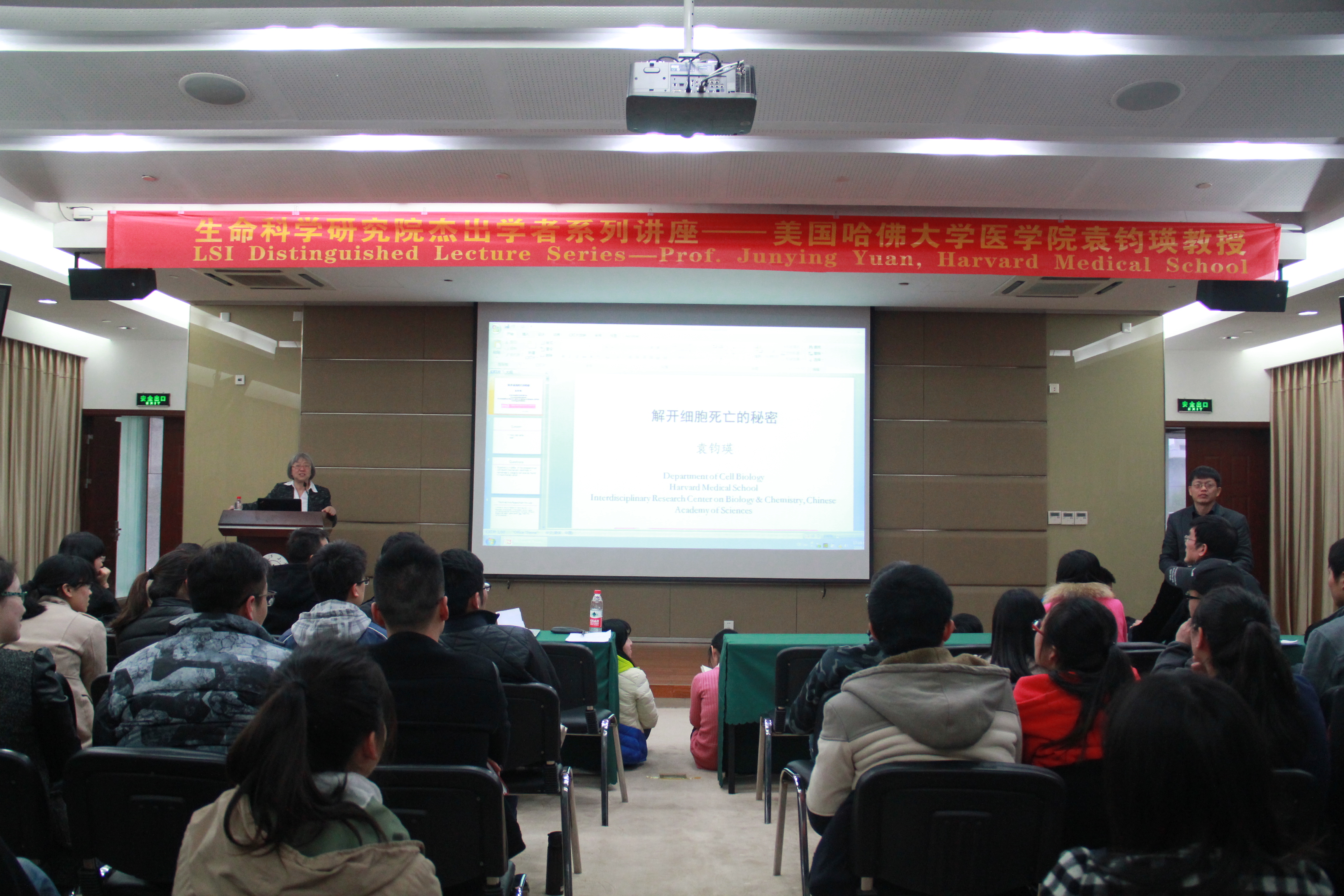 在报告会上,袁钧瑛教授作了题为“揭开细胞死亡的秘密”的学术讲座,介绍了哺乳动物细胞中第一个与凋亡相关的基因— caspase-1的发现,并详细介绍了利用小分子抑制剂necrostatin-1 (Nec-1)发现了另一种新的细胞死亡模式necropotosis,并阐述了其分子机制及necropotosis在不同疾病当中的功能。