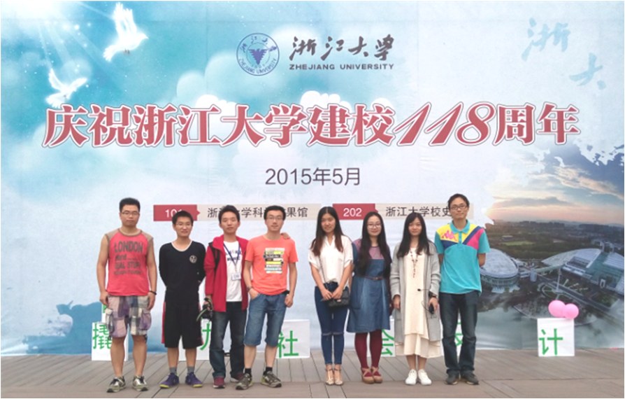 图5. 同学们在浙江大学118周年校庆标志前合影留念