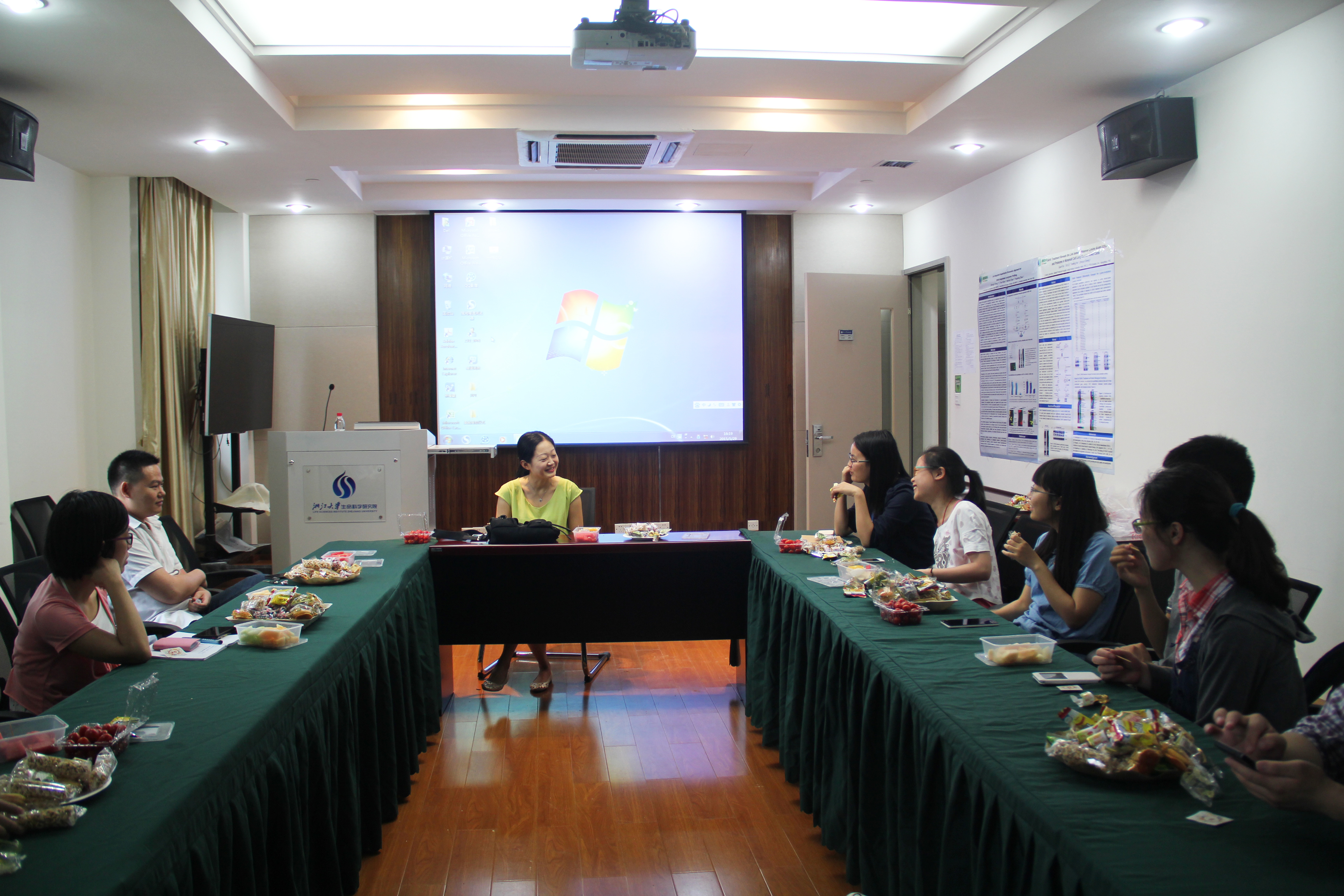 报告结束后,郭蕊与在场同学一起进行了讨论交流。大家在品尝水果和点心同时畅谈科研感悟,现场气氛轻松愉悦。同学们纷纷提出自己在科研过程中所遇到的疑问,包括科研水平的提高途径、科研与生活的平衡、良好研究习惯的养成以及实验过程中的注意事项等,郭蕊针对大家的困惑分享了自己的心得体会。