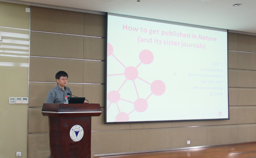 报告会上,赵剑飞博士作了题为“How to publish in Nature and its Sister Journals”的报告,报告会由院长冯新华教授主持。赵博士介绍了Nature的诞生历史与发展理念,阐述了Nature系列刊物的发展趋势及彼此相互独立的运行模式。作为Nature Communications副主编,赵博士对该期刊予以详细介绍,Nature Communications是自然出版集团旗下的子刊,覆盖多种学科,创刊于2010年,2014年影响因子为11.47,2014年累计刊发论文2700余篇。赵博士还具体阐述了论文投稿的流程与标准,同时就投稿和回复审稿人意见过程中遇到的一些典型问题进行详细解读并给出投稿建议。在谈到Nature Communications为何要在中国设立编辑部时,赵博士指出一是要帮助中国的科学家发好的文章,二是要将中国最好的研究介绍给全世界。整场讲座深入浅出,赵剑飞博士就如何发表高质量论文与在场师生充分交流互动,讨论积极热烈。