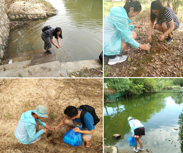 实践期间,调查小组从基地出发,沿途对双联村,仙山村以及周边的上泗安村等村落的田地进行调查取样。之后,调查小组分成两组,分别环仙山湖水库和镇中心周边企业所处的水体和土壤进行取样。同时,实践分队深入走进泗安镇的村落、工厂和水库周边,了解当地的生态环境。
