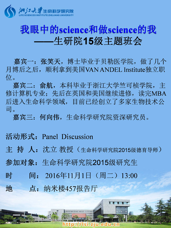 我眼中的science和做science的我――生命科学研究院2015级主题班会