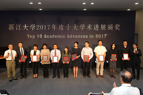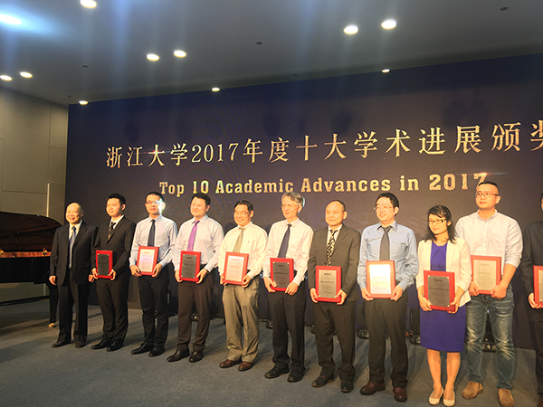 “浙江大学2017年度十大学术进展”颁奖典礼于2018年5月22日在浙大紫金港校区举行,校长吴朝晖院士及校学术委员会主任张泽院士全程参与并发表了会议致辞。我院三项研究成果获评“浙江大学2017年度十大学术进展”项目以及“浙江大学2017年度十大学术进展提名”项目。