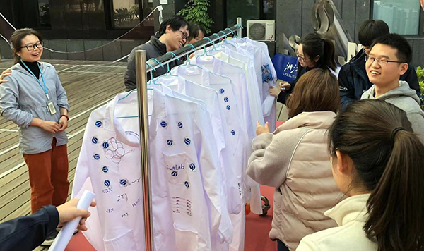 11月29日,文化节系列活动之实验服设计大赛作品在纳米楼四楼露台展出,作品丰富多彩,主题多样,有的设计风格活泼,通过卡通人物或动漫人物来展现;有的以生物相关的元素展现;有的则结合所在实验室的研究模型展现,各实验室积极参与,让常规的实验服增添了不一样的灵动色彩。师生通过现场投票选举出6个最佳实验服设计奖。