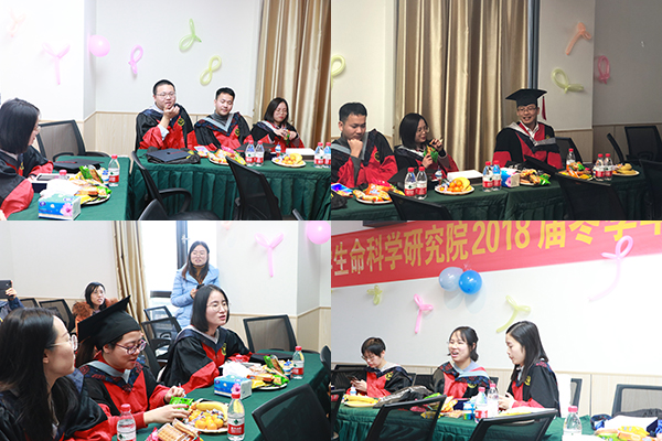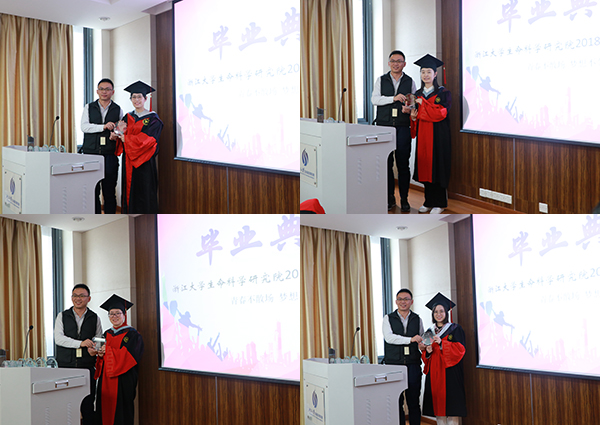 欢送会上播放了毕业生所在实验室师弟妹们精心准备的祝福视频。视频中,有感怀,有不舍,更多的则是感谢师兄师姐们给予的指导与帮助,以及对毕业生的美好祝愿。毕业生也纷纷回忆在生研院的求学经历,分享了毕业感想。刘静波表示他在生研院找到了自己的人生奋斗方向――科研,他从中获得快乐与前进的动力,今后工作会继续选择这条路。高纯祝愿大家将来不管选择什么工作岗位,都能一切顺利,从此展开人生新篇章。戴立思则希望同学间友谊长存,不管将来在哪里发展,都要记得大家来自生研院这一个共同的大家庭。