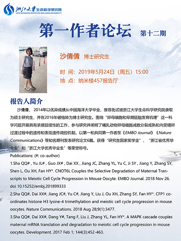 生命科学研究院第一作者论坛第十二期:沙倩倩