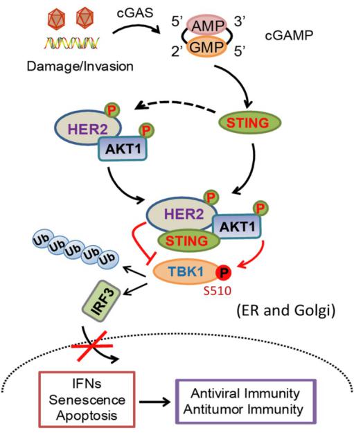 经典致癌通路HER2-AKT1抑制DNA天然免疫识别的分子机制和肿瘤免疫、病毒免疫功能。