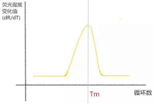 熔解曲线就是随温度升高DNA的双螺旋结构降解程度的曲线。扩增反应完成后,通过逐渐增加温度同时监测每一步的荧光信号来产生熔解曲线。熔解温度上有一特征峰(Tm,DNA双链解链50%的温度),用这个特征峰就可以将特异产物与其它产物如引物二聚体区分开,因为它们在不同的温度熔解度不一样。用荧光信号改变的负的一次导数(dR/dT)与温度作图,得出熔解曲线。曲线横坐标是温度,纵坐标是荧光强度的变化值。