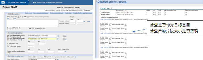10. 引物设计完毕请使用NCBI BLAST功能检索引物特异性,以避免非特异性扩增产生,