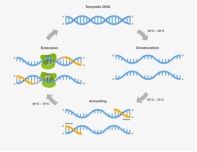 (2) 退火,被称为引物的短DNA分子与目标DNA的侧翼区域结合;