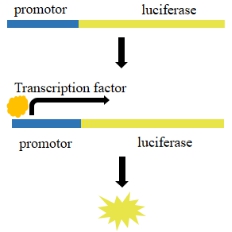 (三)验证特定转录因子同其调控序列的作用。将该序列(通常为启动子区域)插入报告基因载体,同时在实验细胞中共转过表达该转录因子,可分析转录因子过表达是否提高萤光素酶活性。