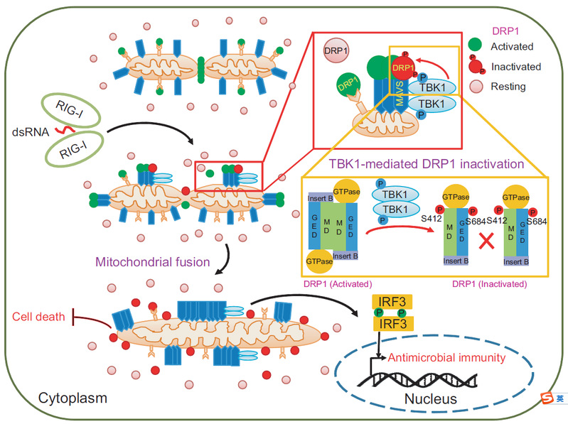 核酸免疫识别MAVS-TBK1-DRP1信号轴控制线粒体的形态与功能