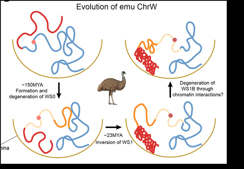 图3 鸸鹋性染色体演化由三维空间构象的改变开始