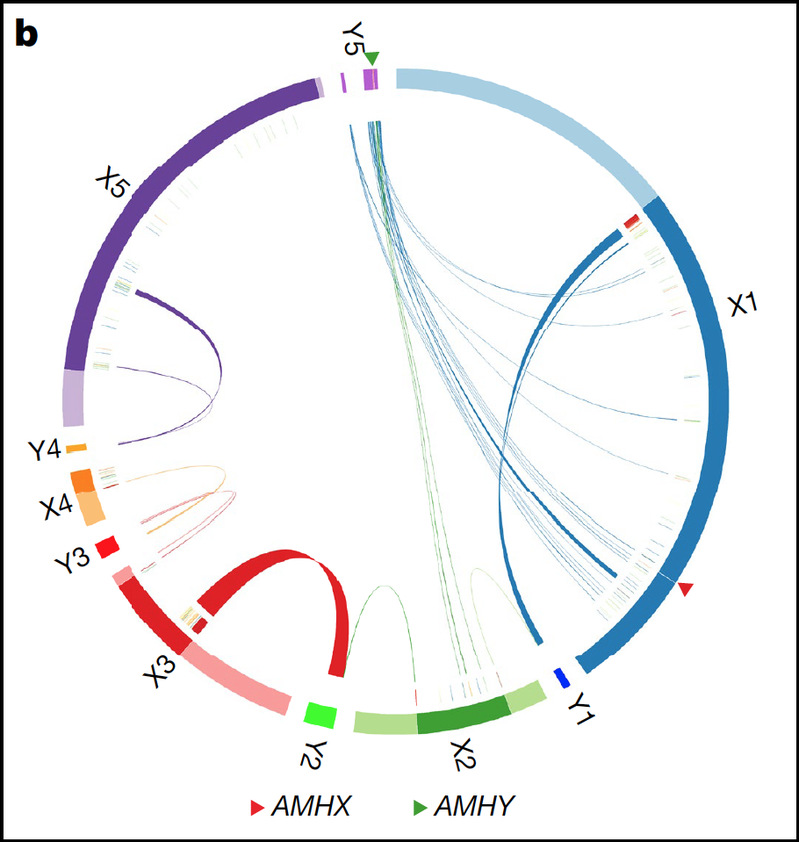图2 鸭嘴兽性染色体:由染色体环演化成染色体链