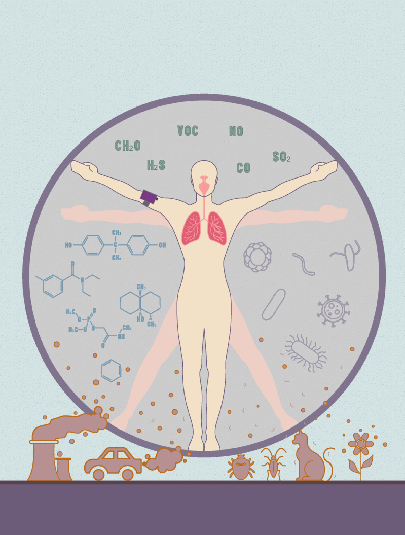 人类疾病是由个体遗传和环境因素共同决定的。而环境的影响可归因为生物、化学、物理甚至是心理等因素(图1)。不正常的环境暴露,特别是在幼儿时期,会大大增加各种急性和慢性疾病,包括癌症、过敏/哮喘和自身免疫性疾病的发生。环境暴露组(Exposome)是近几年新兴的针对于环境因素运用先进技术手段进行大规模量化,并研究这些组分与人类、动物以及其他生物健康状态/疾病发生发展关系的学科。环境暴露组中又以空气中的成份最难以开展研究。因此,开发高通量方法,以高灵敏度和高准确性定性和定量个体空气暴露组组分至关重要。