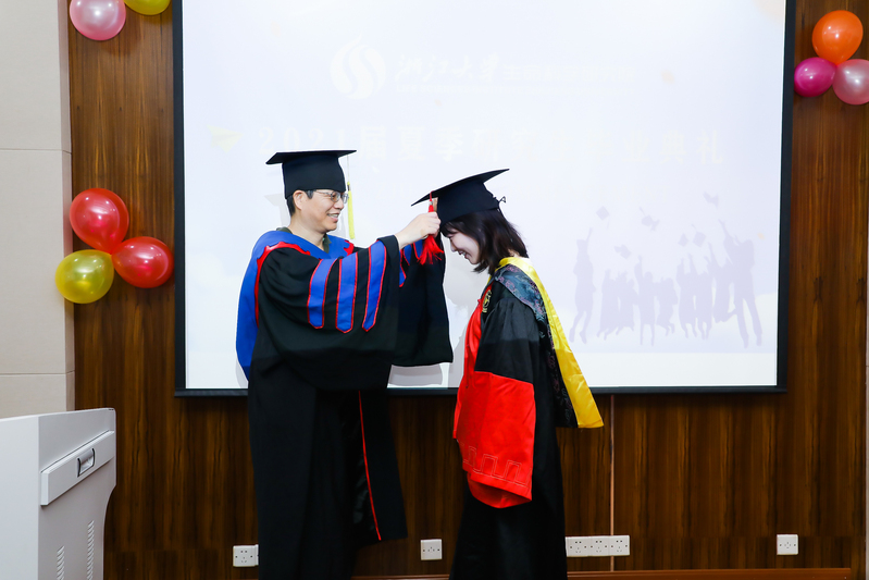 随后,冯院长为毕业生拨穗正冠,德育导师汪方炜、任艾明老师为毕业生颁发纪念礼物,为大家的研究生生活留下美好纪念,共同祝愿大家拥有美好的未来。