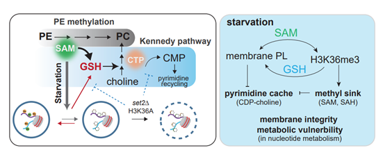 图1:细胞适应饥饿环境的过程中,磷脂酰胆碱PC合成和组蛋白H3K36甲基化