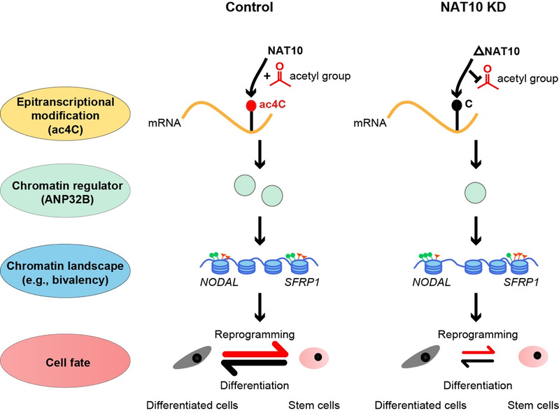 图1. NAT10-mRNA ac4C对干细胞命运的重要调控作用及分子机制