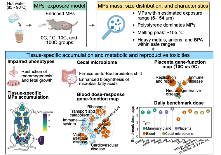 该研究首次系统揭示了在被普遍认为无害的DPCs消费水平下,MPs在孕鼠体内的组织特异性积累以及对代谢和生殖的毒性影响,强调了需要进一步评估和应对这些潜在健康危害,并呼吁制定相应的食品安全法规,特别是针对孕妇等高风险人群。