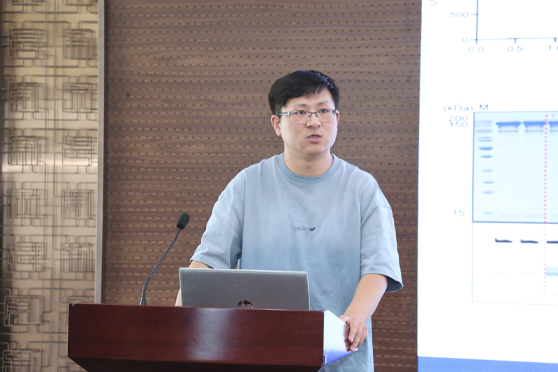 叶存奇主持了代谢相关专题报告。北京大学未来技术学院刘啸宇针对NADPH氧化酶的激活机制研究进行了介绍,从研究背景、研究策略等多角度出发对于NOX2如何由静息状态转化为激活状态、NOX2复合物的纯化、静息态与激活态NOX2的冷冻电镜数据分析等研究过程简明直观地进行了展示与讲解。北京生命科学研究所黎亨围绕《astrocytes are the most numeerous glial cell in the brain》这一主题展开,提到筛选到了光敏蛋白来激活新型胶质细胞并发现在过程中可依赖于胞吐释放ATP和谷氨酸。华中科技大学生命科学与技术学院吴亚对糖苷水解酶的稳健性改造及其机制解析进行了讲解,对木聚糖酶、木糖苷酶的酶挖掘,酶改造、机制解析等步骤进行了详细的阐释。浙大生研院王婷对病原菌新型的磷酰基腺苷酸化酶效应蛋白家族及其独特的致病机制相关研究背景、研究路径及结果等进行了解析,阐述了LnaB的研究及相关工作。现场展开了热烈的讨论。
