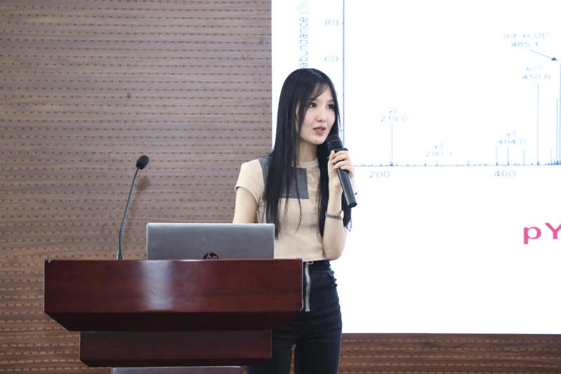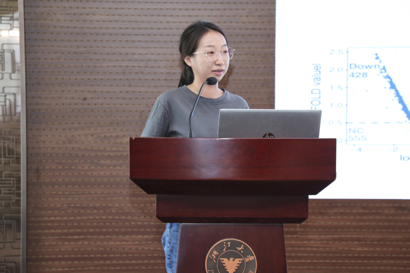 番文春主持了分子信号转导的专题报告。来自清华大学基础医学院的崔晓燕围绕“Autophagy factors mute primed mucosal immunity against acute pulmonary infections”主题展开,该研究探讨了自噬因子在调节身体对急性肺部感染时,如何影响已经被激活(primed)的粘膜免疫系统,并提到了ATG14的自噬基因会在骨髓细胞中引发较高水平的多态性。来自清华大学基础医学院的田耀木介绍了通过筛选所得到的恐惧相关的基因-Megf10,通过对Megf10的敲除等相关研究,同时也对相关的功能及分子机制的探究进行了介绍。清华大学生命科学学院郑健飞围绕蛋白质分泌所做的相关研究进行展开,对TMED蛋白家族进行了介绍,认为TMED介导UcPS具有特异性,对ERGIC局部化、ERGIC脂质激活TMED介导的易位等要点也进行了讨论。浙江大学基础医学院马德敏介绍了甜味受体GR感知糖的分子机制研究,对GR43a与GR64a进行了介绍,她认为GR43a是一个四聚离子通道并呈封闭构象而与果糖结合的GR43a-1418A呈开放构象。武汉大学生命科学学院徐嫣然阐述了端锚聚合酶TNKS及免疫等研究结果,讲述了宿主细胞如何调控VISA活性,如何发现VISA互作蛋白TNKS1/2以及TNKS与VISA之间是否存在相互作用等。