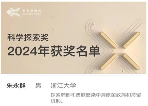 8月26日上午,第六届“科学探索奖”获奖名单正式揭晓,我院朱永群教授获奖。