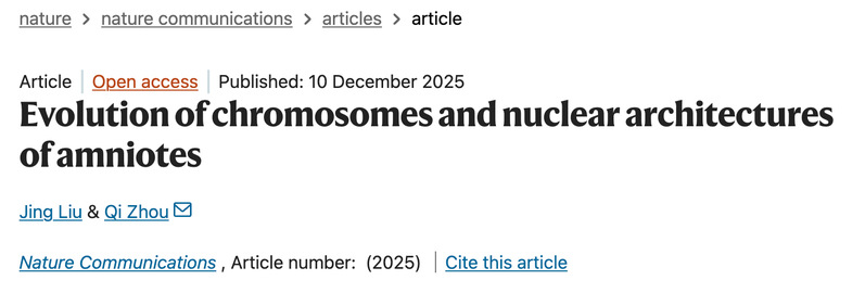 近日,周琦教授课题组在Nature Communications期刊发表题为“Evolution of chromosomes and nuclear architectures of amniotes”的研究论文。该研究通过重建羊膜动物祖先基因组,结合多组学数据,揭示了哺乳动物与爬行动物在染色体演化模式上的巨大差异,以及二者在细胞核三维构象上令人意外的深度保守性。