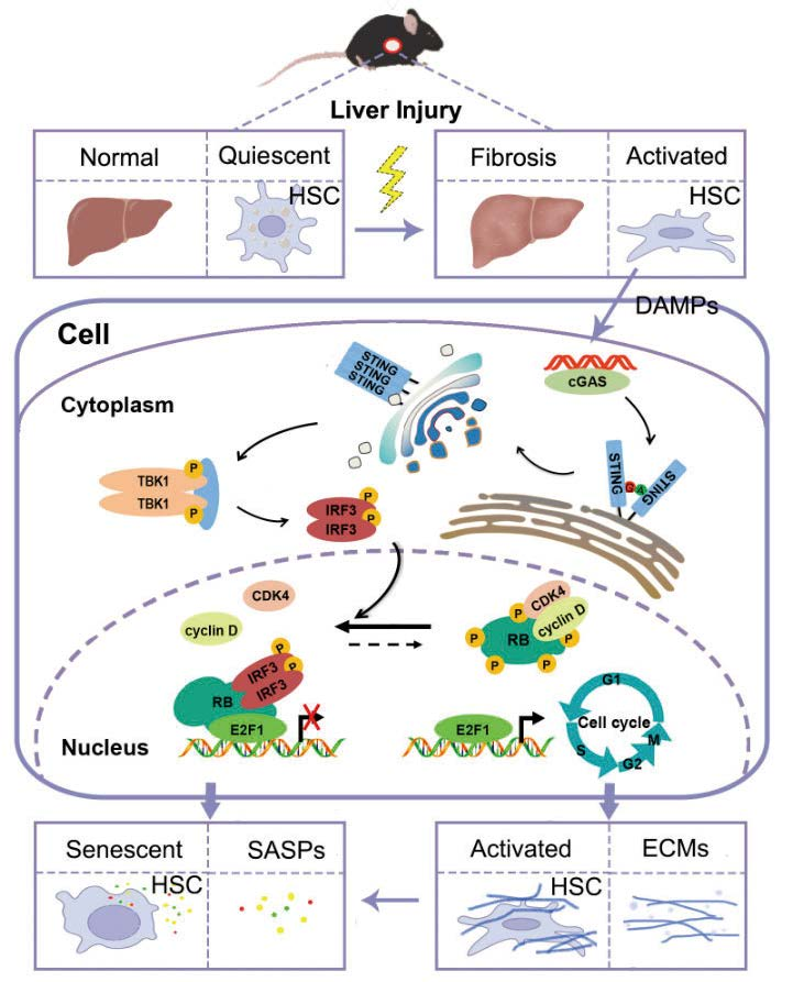 Pinglong Xu Laboratory, Science Advances: IRF3 activates RB to authorize cGAS-STING-induced senescence and mitigate liver fibrosis