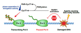 Huasong Lu’s group reports a novel mechanism by which PARP1 PARylates CycT1 to dynamically govern the transcriptional phase separation in response to DNA damage stress