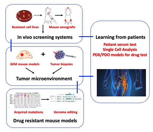 我们实验室从两个方向探索肿瘤转移与耐药的分子机制,系统性研究耐药形成过程中细胞命运重塑及肿瘤微环境的影响: